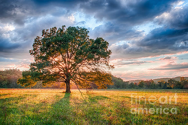 We love taking pictures of this beautiful tree in the field across from Dan Lawson’s Cabin in Cades Cove in the Smoky Mountains National Park. This particular evening, I decided to walk in the field beside the big tree and set up my camera to take a sunset picture. There were some dark clouds in the sky so I was not sure if I was going to get a sunset shot, but as the sun was setting it gave a beautiful glow to the entire tree and I knew it was time to start shootings.